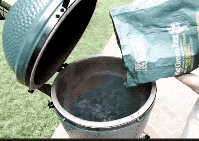 Pour in a full load of charcoal - go ahead and cover that fire ring! A full load of good charcoal will cook for 3.5 - 4 hrs at 600F. The setup inside the egg starts with the platesetter legs down (not in the low position slots). Then, an aluminum plate can be used as an additional deflector below the pizza stone. If you would like additional spacers, position them between the metal cooking grate and the aluminum deflector. The challenge in cooking in a Kamado is that all the heat is below the stone. Deflectors and spacers protect the bottom of the pizza stone and trapping the heat in the dome raises the temperature of the ceramic of the dome. Below is the process: